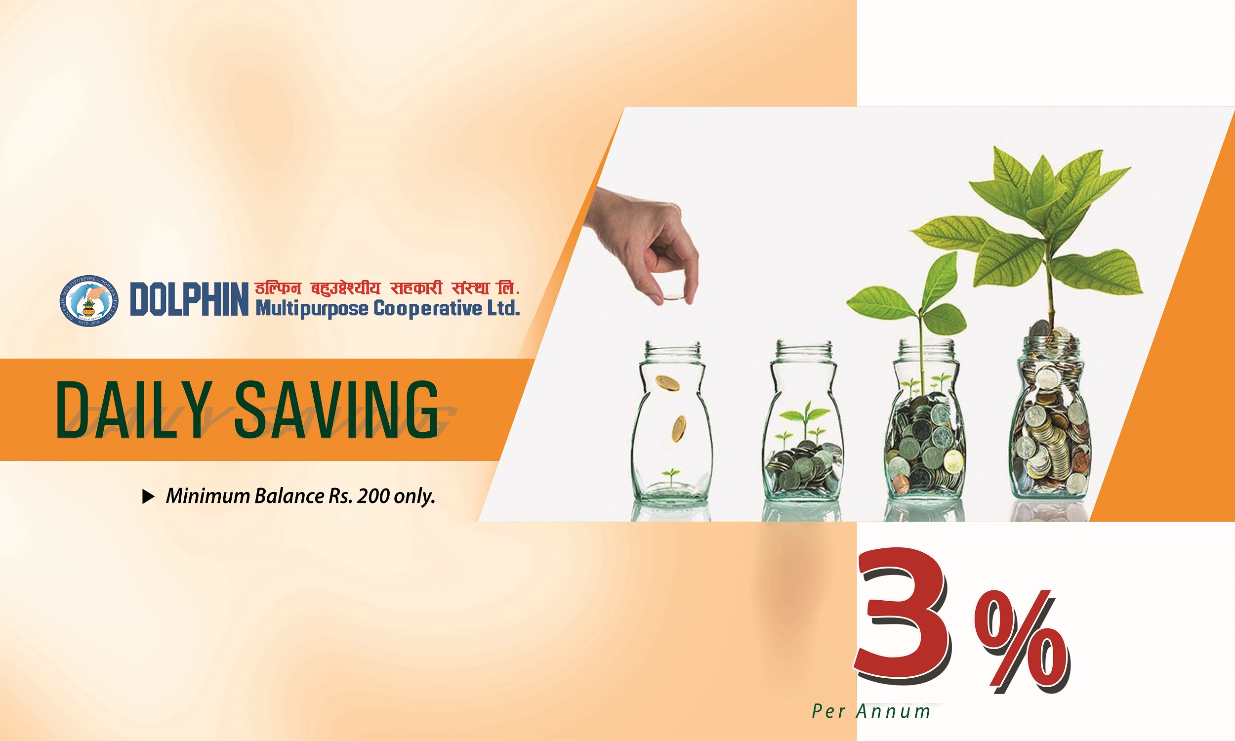 यस बचत कार्यक्रम अन्तर्गत घर, अफिस, पसल तथा अन्य ब्यवसायबाट केही रकम दैनिक रुपमा नियमित/अनिवार्य संकलन/बचत गर्न तोकिएको बजार प्रतिनिधिहरु मार्फत् आफ्नो रकम जम्मा गर्न सकिने छ । यस बचत योजनामा न्युनतम मौज्दात रु.२००/– राखी संस्थाले दिने अन्य सुविधाहरु लिन सकिने छ । यस बचत योजनामा दैनिक न्युनतम माैज्दातमा त्रैमासिक ३ % ब्याज प्रदान गरिने छ ।